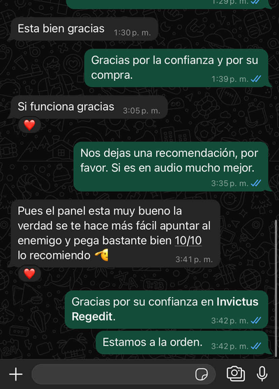 "Pues el panel esta muy bueno la verdad se te hace más fácil apuntar al enemigo y pega bastante bien 10/10 lo recomiendo 🫡"