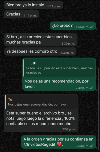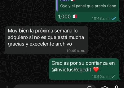 "Si quiero adquirir en un futuro los complementos nuevo del panel te vuelvo hablar por acá sigue así Bro 100 calidad"